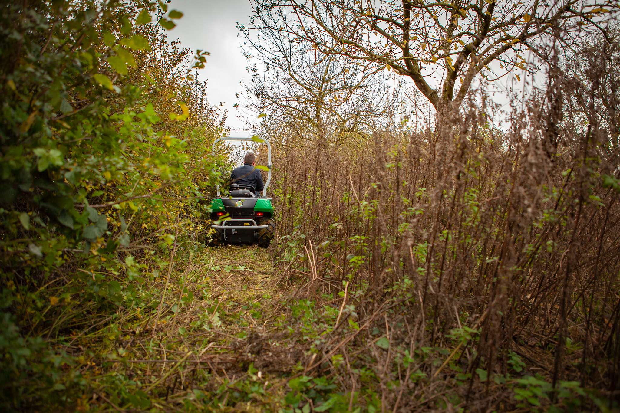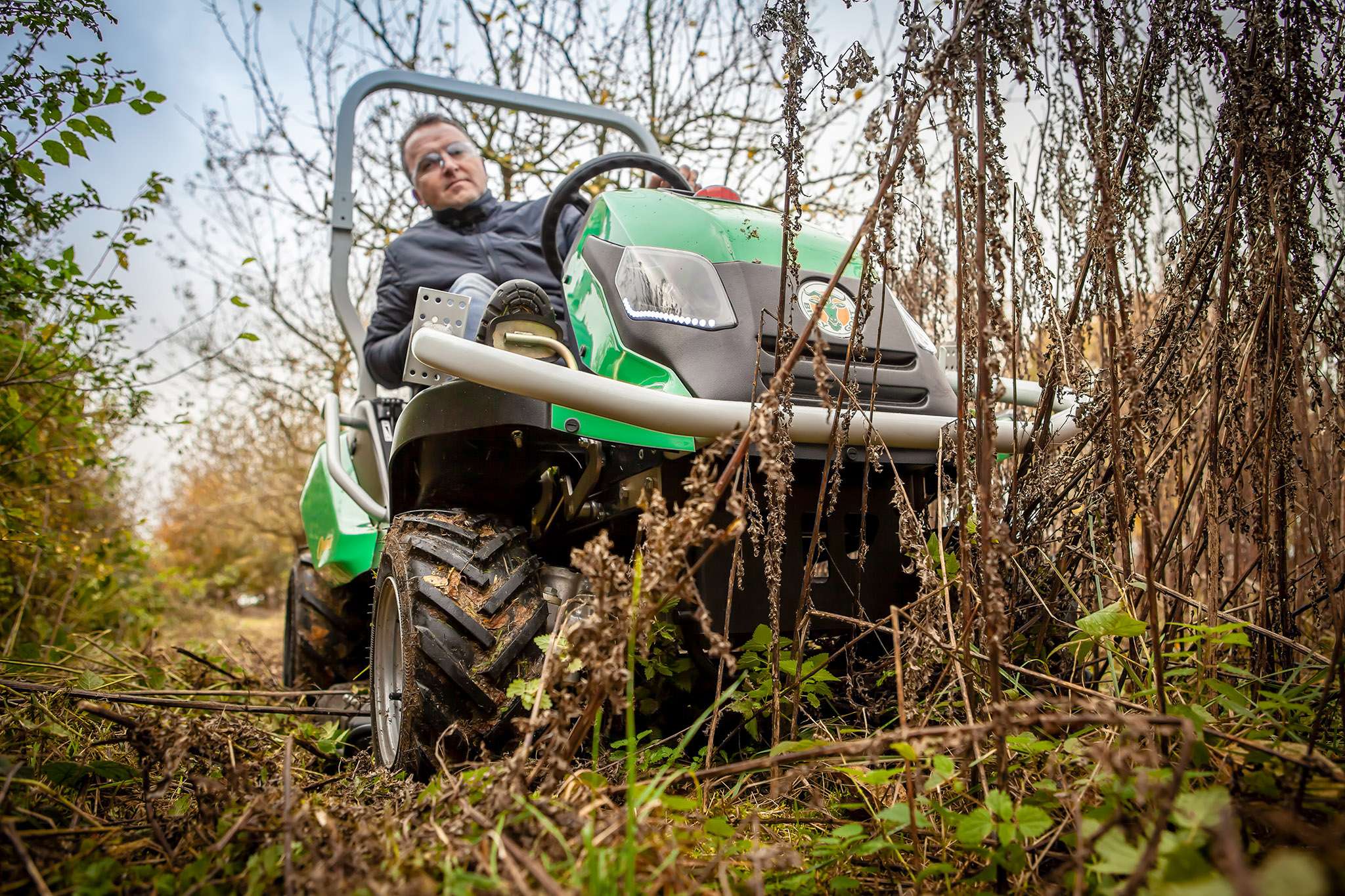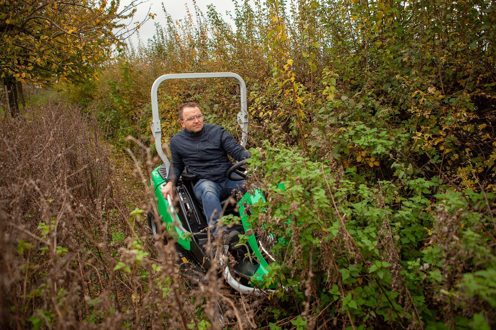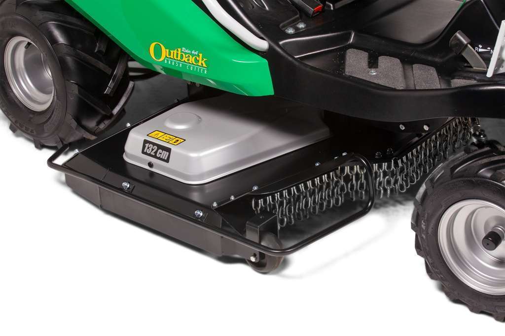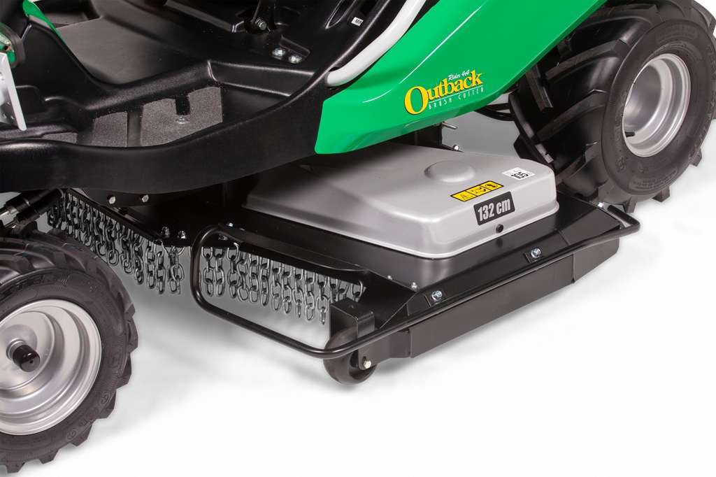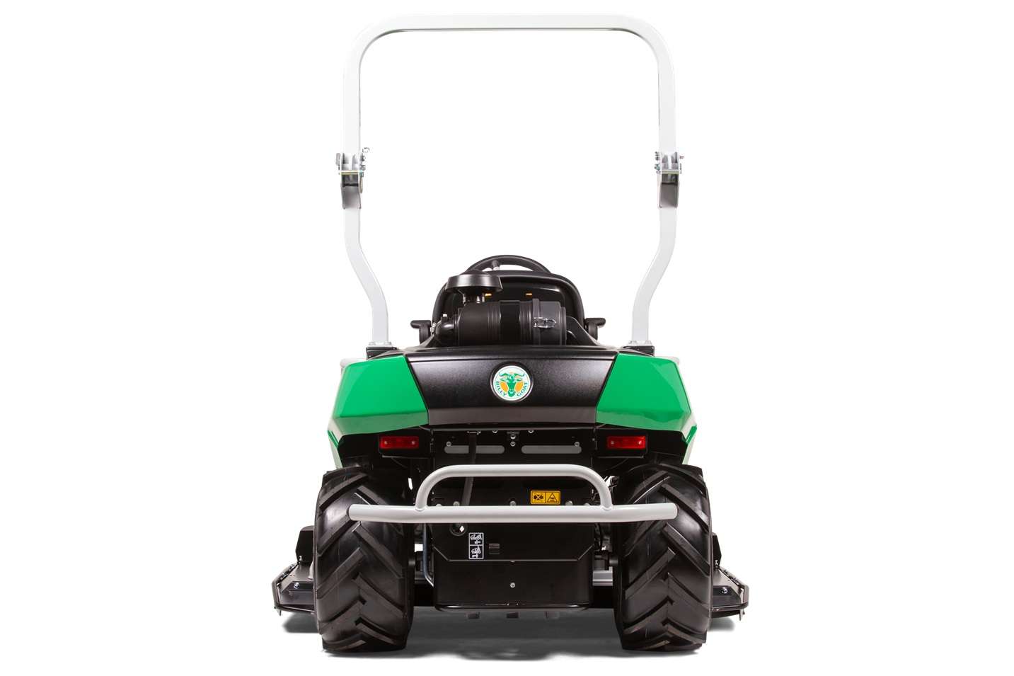 El riel rígido de protección envuelve la plataforma del asiento protegiendo tanto a la máquina como al operador. También sirve como un agarre seguro en la máquina, es decir, si necesita inclinarse hacia afuera mientras corta los bordes.